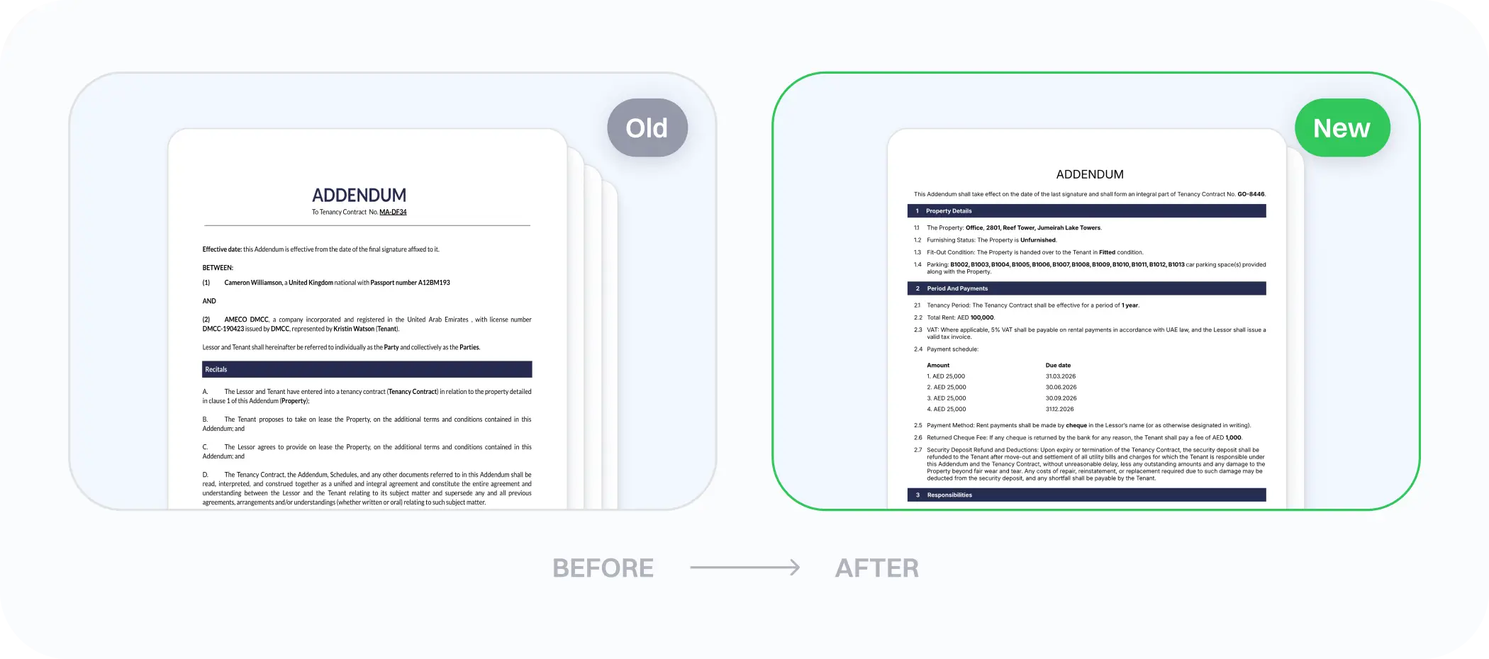 As part of this update, the addendum has been reduced from 8 pages to 2. Repetition has been removed, sections have been grouped more clearly, and the document is now easier to review and sign.