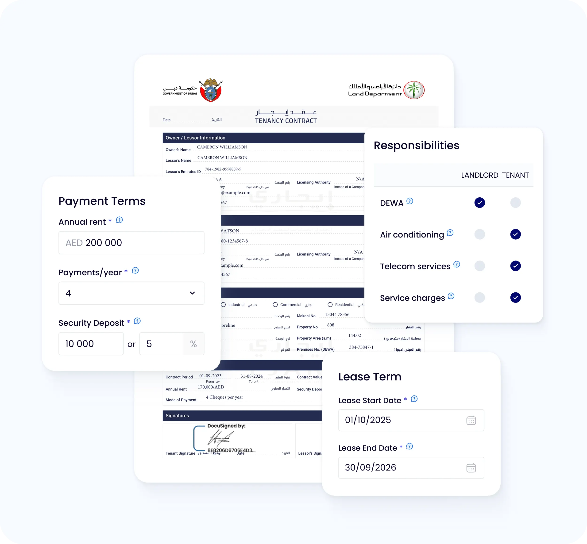 Free service that allows you to generate Dubai-specific tenancy contracts for long-term rentals by yourself.